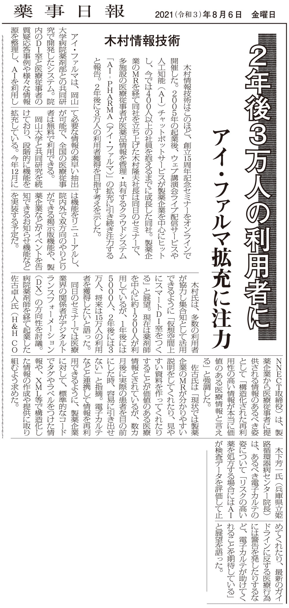 AI-PHARMAの記事が「薬事日報」に掲載されました。