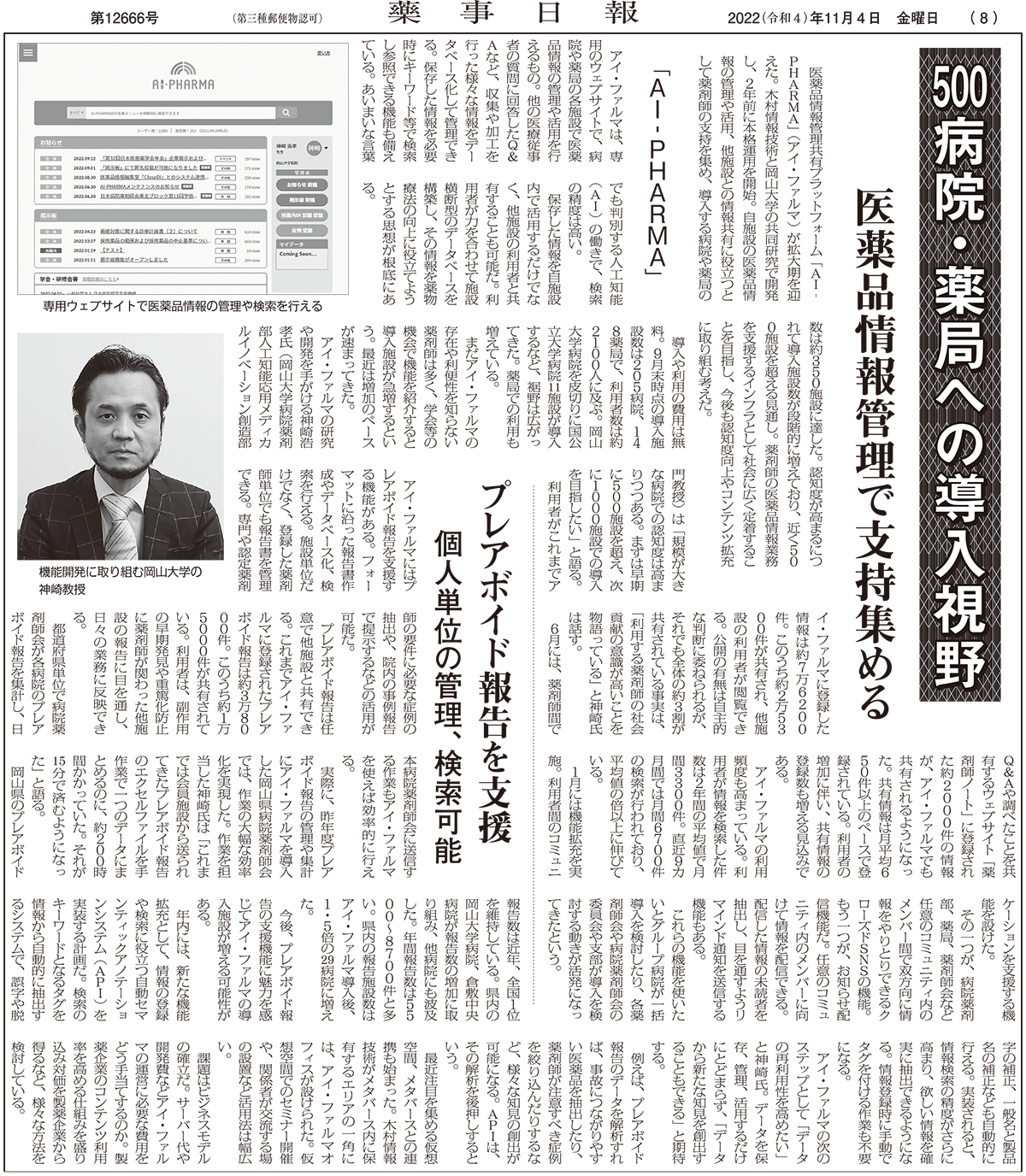 AI-PHARMAの記事が「薬事日報」に掲載されました。