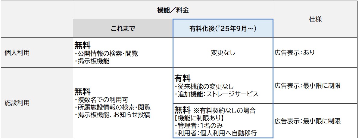 2025/9/1より施設利用で有料版スタート(無料利用も可能、個人利用は無料継続!)